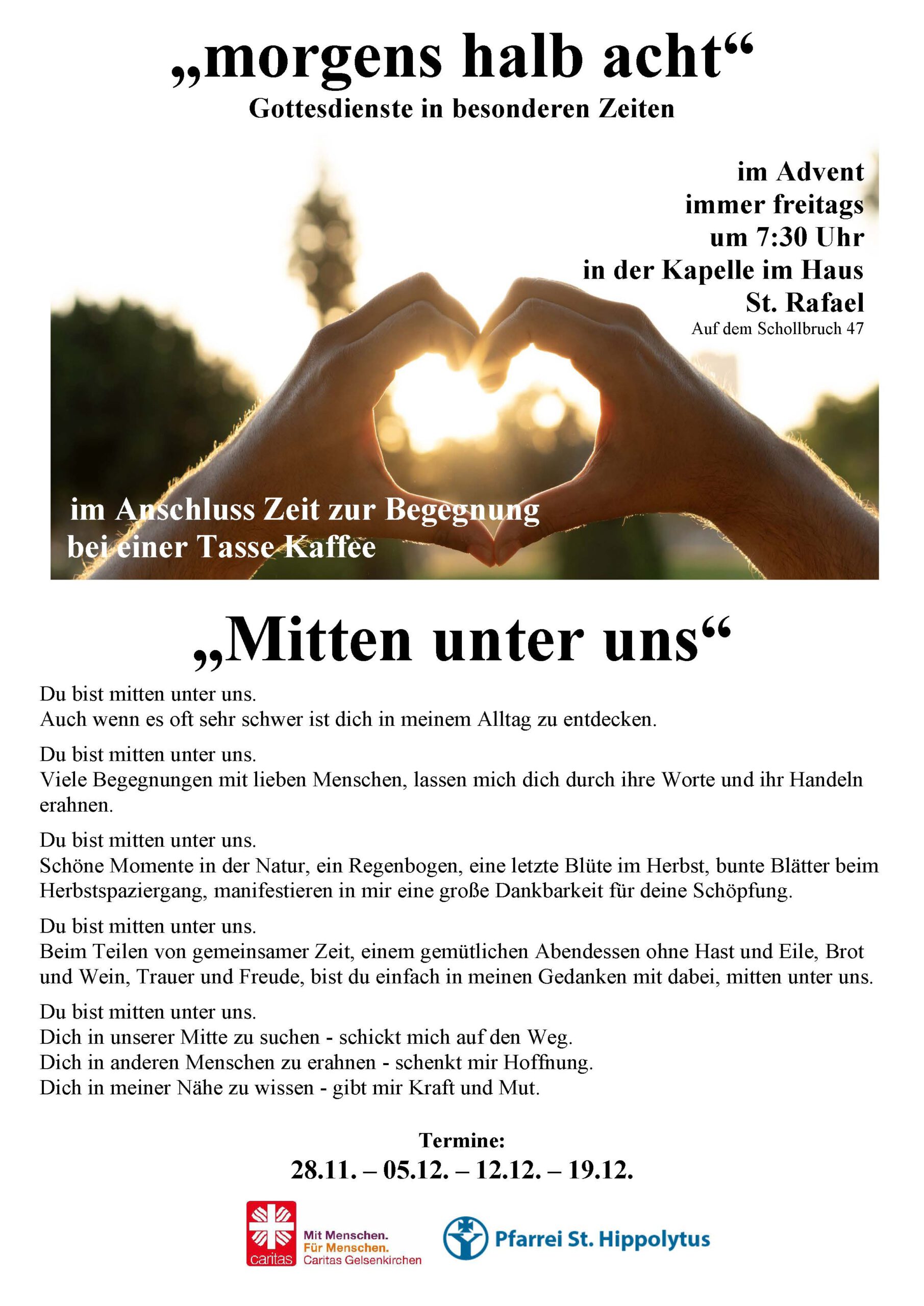 Start Allgemein Gottedienst in besonderen Zeiten Allgemein Gottedienst in besonderen Zeiten 7. November 2025 Herzliche Einladung, sich gemeinsam auf den Weg durch den Advent zu begeben. VERWANDTE ARTIKELMEHR VOM AUTOR Allgemein Taizégebet 23.11.2025 Essen Karnap, Hattramstr. Aktuell Herzliche Einladung zum Carnaper Adventsmarkt an St. Marien am 22.11.2025 Aktuell Schweigezug & Kundgebung am 9. November 2025 zum Gedenken an die Opfer der Novemberpogrome 1938 Gemien Bekanntmachung zu den PGR- und KV-Wahlen Aktuell Liturgischer Abreißkalender 2026